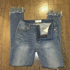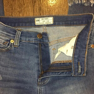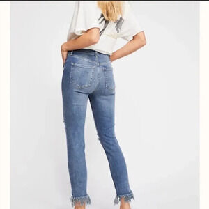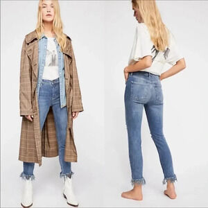 Free People Great Heights Medium Wash Fray Distressed Skinny Jeans Size 24