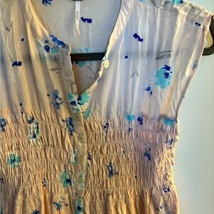 Free People Greatest Day Floral Smocked Dress size XS. Full button closure. Smocked material. Gently used. Light pink floral color. No obvious signs of wear or damage.