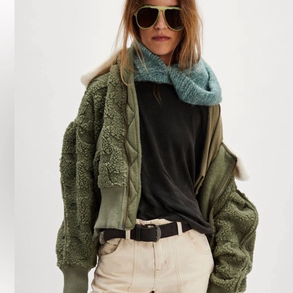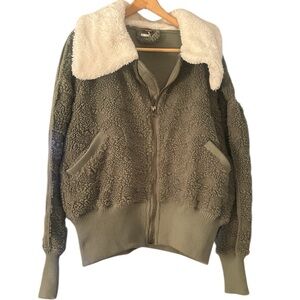 Free People Green Cozy Up Faux Fur Cardi in Crystal Kelp Olive Color Size M