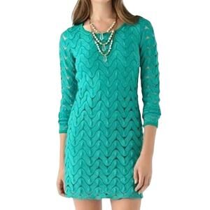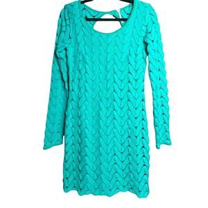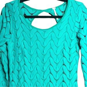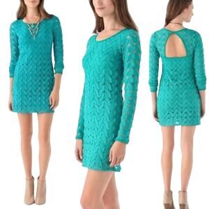 Free People Green Crochet Dress Size S Wild Things Cut Out Back Mini Long Sleeve