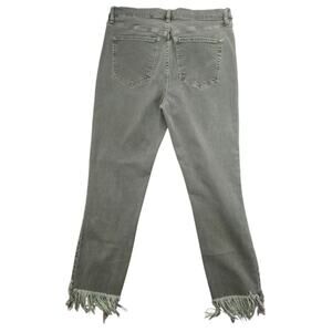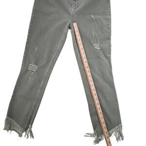 Free People Green Denim Jeans Frayed Bottom Distressed Skinny Womens Size 31