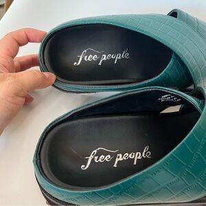 OMG — these Free People slides are a statement piece! With chunky black platform soles and rich emerald green straps, they’re the perfect blend of comfort and style.