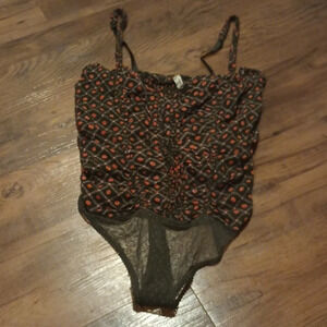 Free People Green Floral Gathered Corset Fit Spaghetti Strap Bodysuit A36