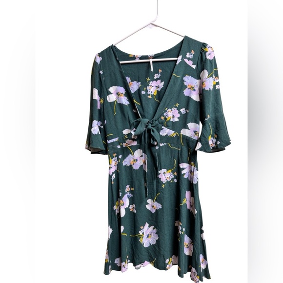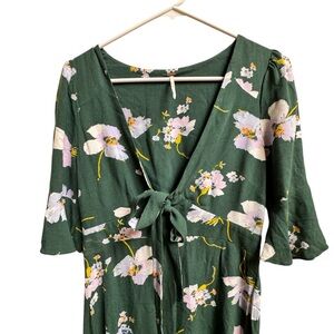 Free People Green Floral Tie Front Mini Dress Size 2 XS Boho Cottagecore