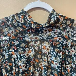 Elevate your style with this Free People blouse, featuring a chic high low hem and a relaxed fit. The mandarin collar add a touch of sophistication, while the tie front detail offers a modern twist. Perfect for any occasion, this long sleeve top is a versatile addition to your wardrobe.