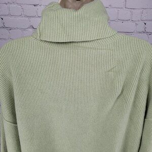 Free People Green Knit Oversized Pullover Turtleneck Sweater Size Medium M