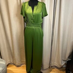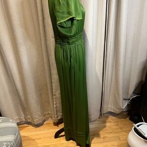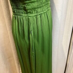 Free People Green Satin Wide Leg Jumpsuit Size S