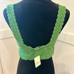 This vibrant green tank top from Free People features a sleeveless design and a fitted, cropped silhouette. Its lightweight fabric and airy structure make it perfect for warm weather, while the form-fitting bodice ensures a flattering fit.