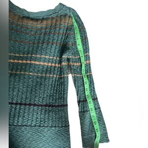 DETAILS: Large Free People sweater in a green/blue color. In good used condition. See measurements in photos. Cotton/nylon blend. This is a thick, textured material.