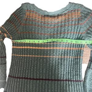 Free People Green Striped Zip Front Crew Neck Sweater - Large
