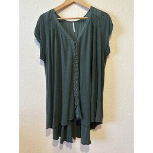 Free People Green Top Forest Fairy Goth Button Up Size M Pleated Smocked Boho