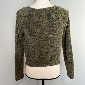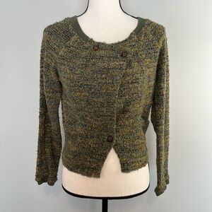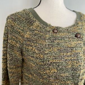 Free People Green Tweed Wool Blend Button Jacket Sweater