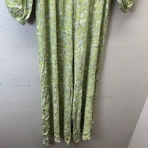 Free People Green Wide Leg Cropped Babydoll Deep V Boho Tie Front Jumpsuit spring summer festival lightweight gauze material XS