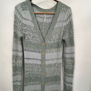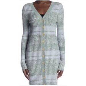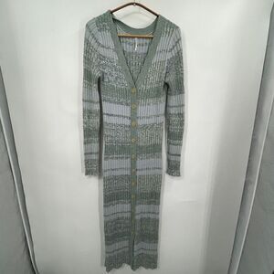Stylish maxi dress with button-down front. Features a ribbed knit design. Perfect for casual outings.