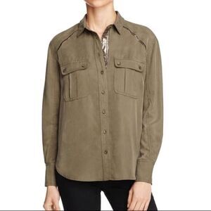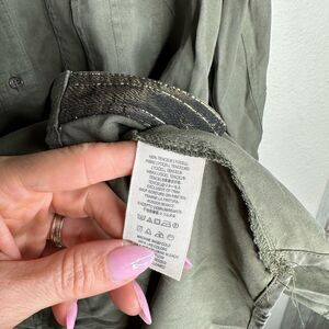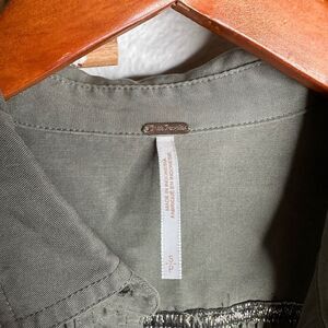Free People Womens Army Green Off Campus Button Up Shirt size small. Button front. Chest pockets. 100% tencel. Excellent condition