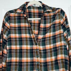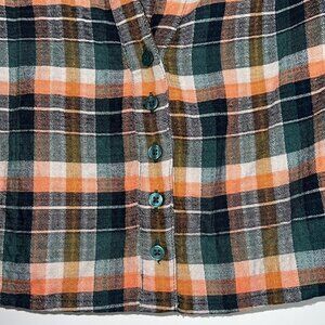 Free People Green/Orange Beach Plaid Checks Button Down Cozy Cotton Shirt sz XS