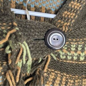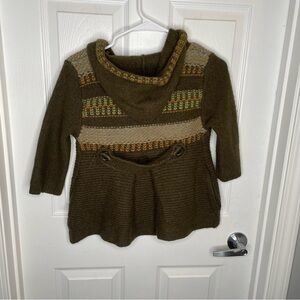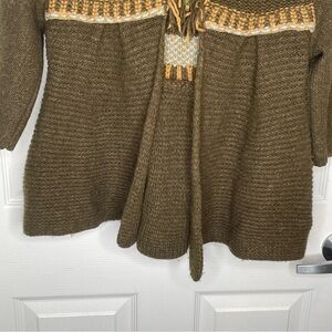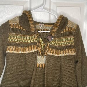 Free People Gretel Swing Hoodie Wool Angora Fair Isle Hood Cardigan in Green S