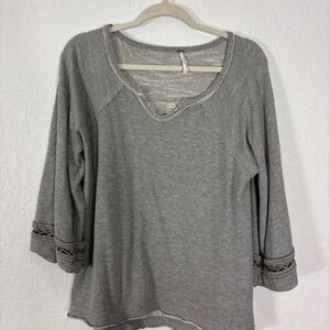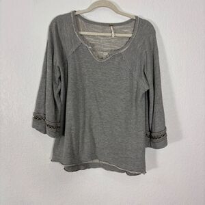 Free People Grey Bell Sleeve Flowy Top Size Small