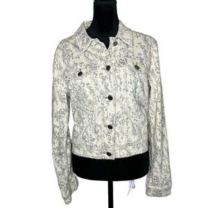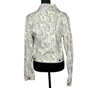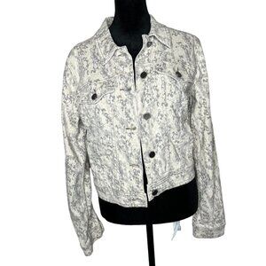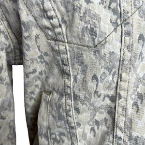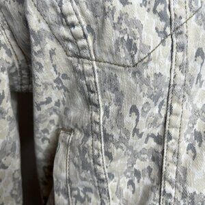 Free People Grey Cream Camo Denim Jean Jacket Fitted Cropped Size Small