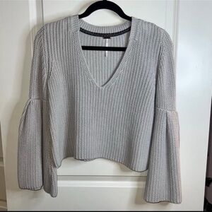 Free People Grey Damsel Bell Sleeve Knit Sweater