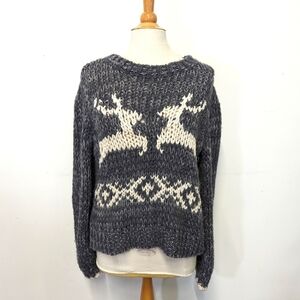 Free People Grey Dancer and Prancer Reindeer Sweater L
