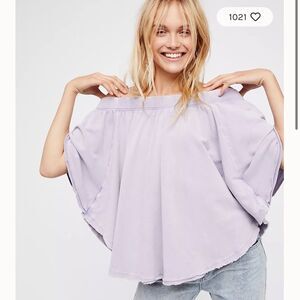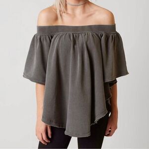 Free People Grey Oversized Off Shoulder Raw Edge Sweatshirt Top