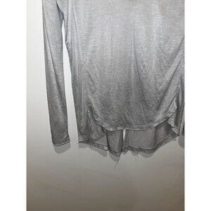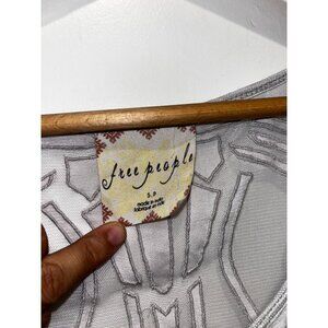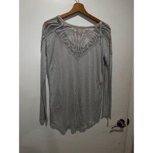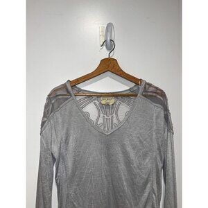 Free People Grey Sheer Long Sleeve Top With Mesh Shoulders & Embroidery Small