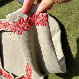 Free People Grey and Orange Paintbrush stroke soft knit with embroidered long sleeves dress size M.