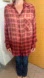 Free People Grunge Plaid Shirt Ombre’ Raw Hem Oversized Red XS