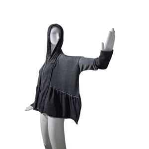 Free People Grungecore Womens size L Oversized Distressed Hooded Slouchy Jacket Alternative Lifestyle Prep Streetwear Academia Comfy