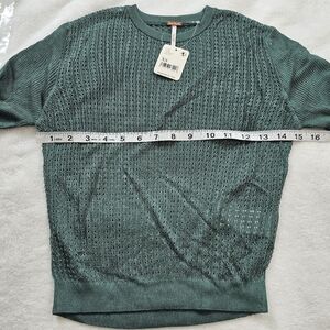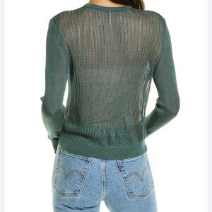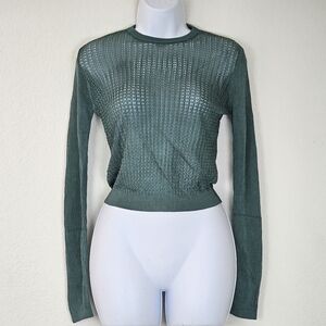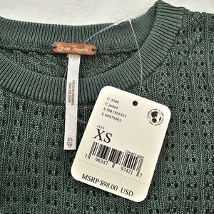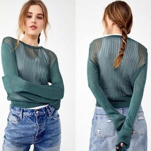 Free People H2O Crew Open Stitch Knit Long Sleeve Top Jade Green XS NWT