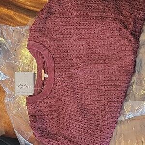 Free People H2O Crew Pullover Sweater Top NEW! Raw Garnet
