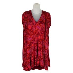 Free People HELLO LOVER Floral Ruched Long Sleeve Flowy Tunic Top Dress in Red M