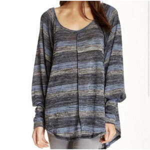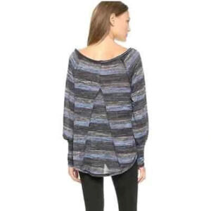 Free People Hacci Carolina Striped Pullover Sweater in Blue/Grey Size M
