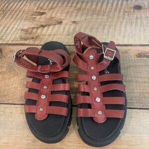 Bring the edge with these gladiator-inspired sandals, featuring strappy leather uppers with hammered stud details, sat on a lug sole for a major detail.