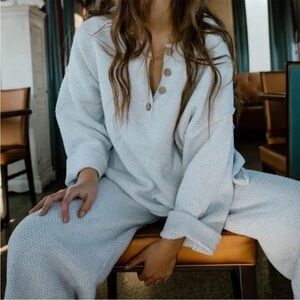 Experience comfort and style with this elegant cream knit set. Perfect for any occasion.