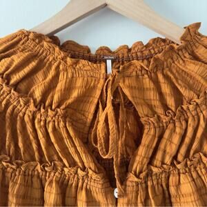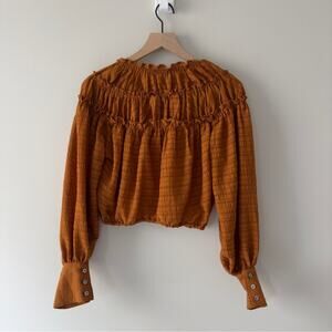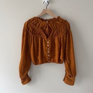 Free People Hailey Blouse Rust Brown Ruffled Women's Top peasant button down XS