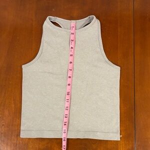 Essential racerback cami featured in a form-fitting ribbed design with a slightly cropped silhouette.