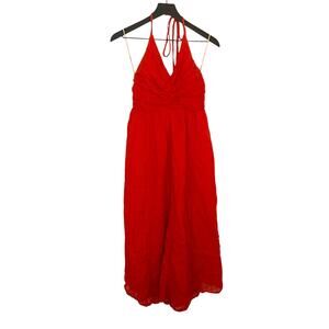 Free People Halter Dress Cotton Tie Midi Orange Medium