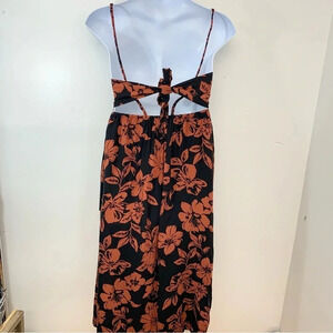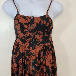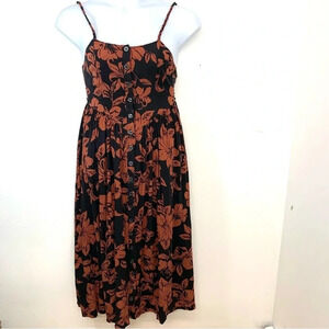 Free People Halter Dress Small Long Midi Button Front Printed Pockets Boho Beach
