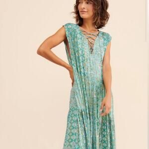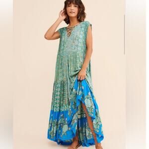 Free People Hanalei Bay Maxi Dress Hawaii Breeze Combo. size L NWT