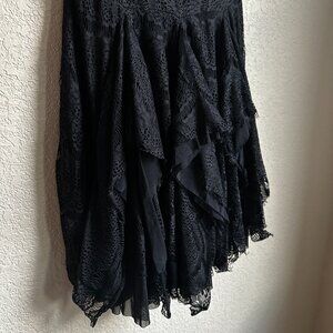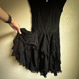 Free People Handkerchief Hem Lace Overlay Sheer Black Dress