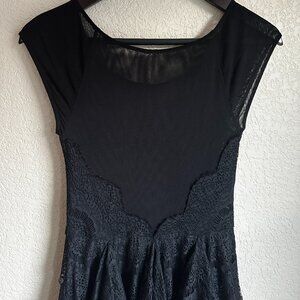 Free People Handkerchief Hem Lace Overlay Sheer Black Dress, Size XS.