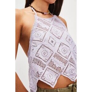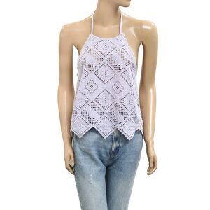 Free People Hankie Halter Tank Top Floral Eyelet Embroidered Cotton S NWD 279122
