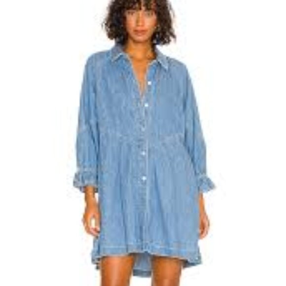 Free People Hannah Denim Mini Dress in Sunday Morning Size Medium NWT