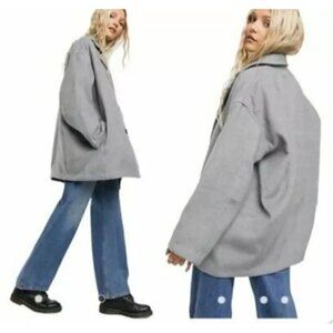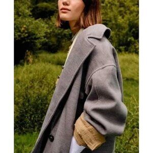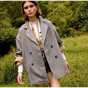 Free People Hannah Slouchy Double Breasted Pea Coat Blazer Medium Oversized Gray