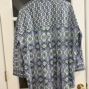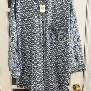 A sleep shirt features an allover print and soft construction for a good nights rest