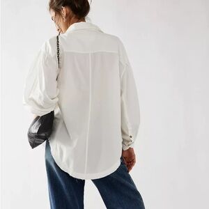 Free People Happy Hour Solid Poplin Top in white