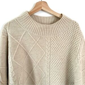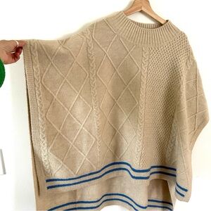 Free People Harbour Stripe Cable Poncho Cream Light Blue Stripe One Size