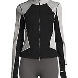 With a touch of retro inspiration, this vibrant color-block sport jacket features reflective rib-knit panels and thumb holes at the cuffs for a clean fit